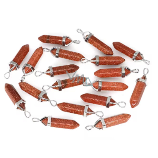 Goldstone zlatý kyvadlo šestihran přívěsek 41 x 13 mm, kámen ambicí