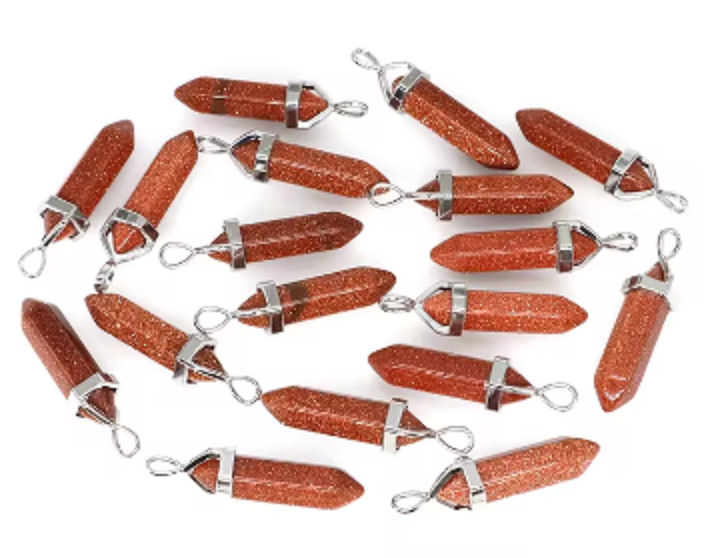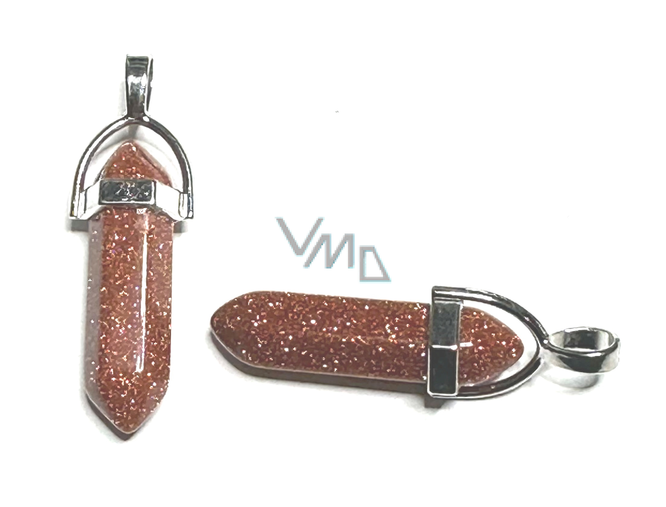 Goldstone zlatý kyvadlo šestihran přívěsek 41 x 13 mm, kámen ambicí
