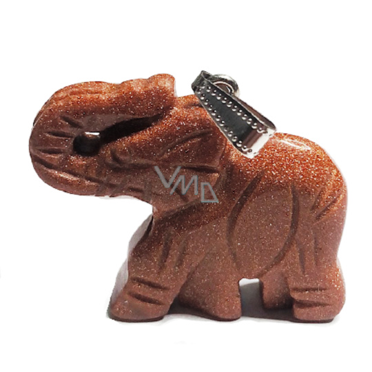 Goldstone zlatý Slon přívěsek ručně broušená figurka 3,5 cm, kámen ambicí