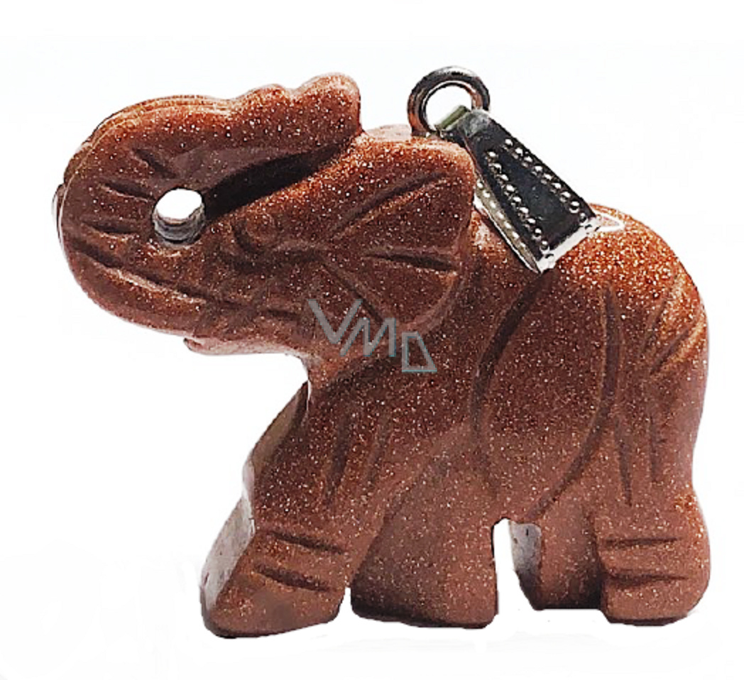 Goldstone zlatý Slon přívěsek ručně broušená figurka 3,5 cm, kámen ambicí
