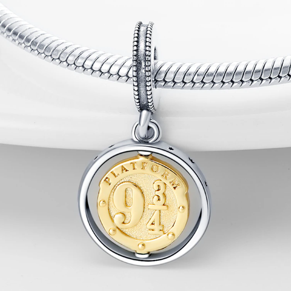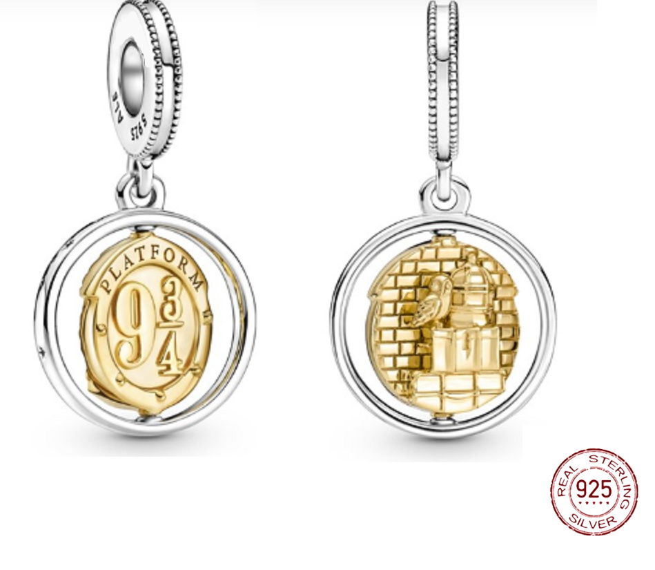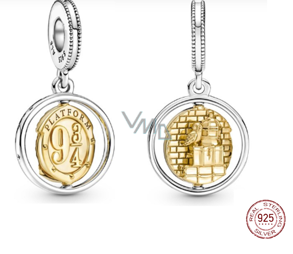 Charm Sterlingové stříbro 925 Harry Potter - 9 a 3/4, Hedvika, otáčecí přívěsek na náramek, film
