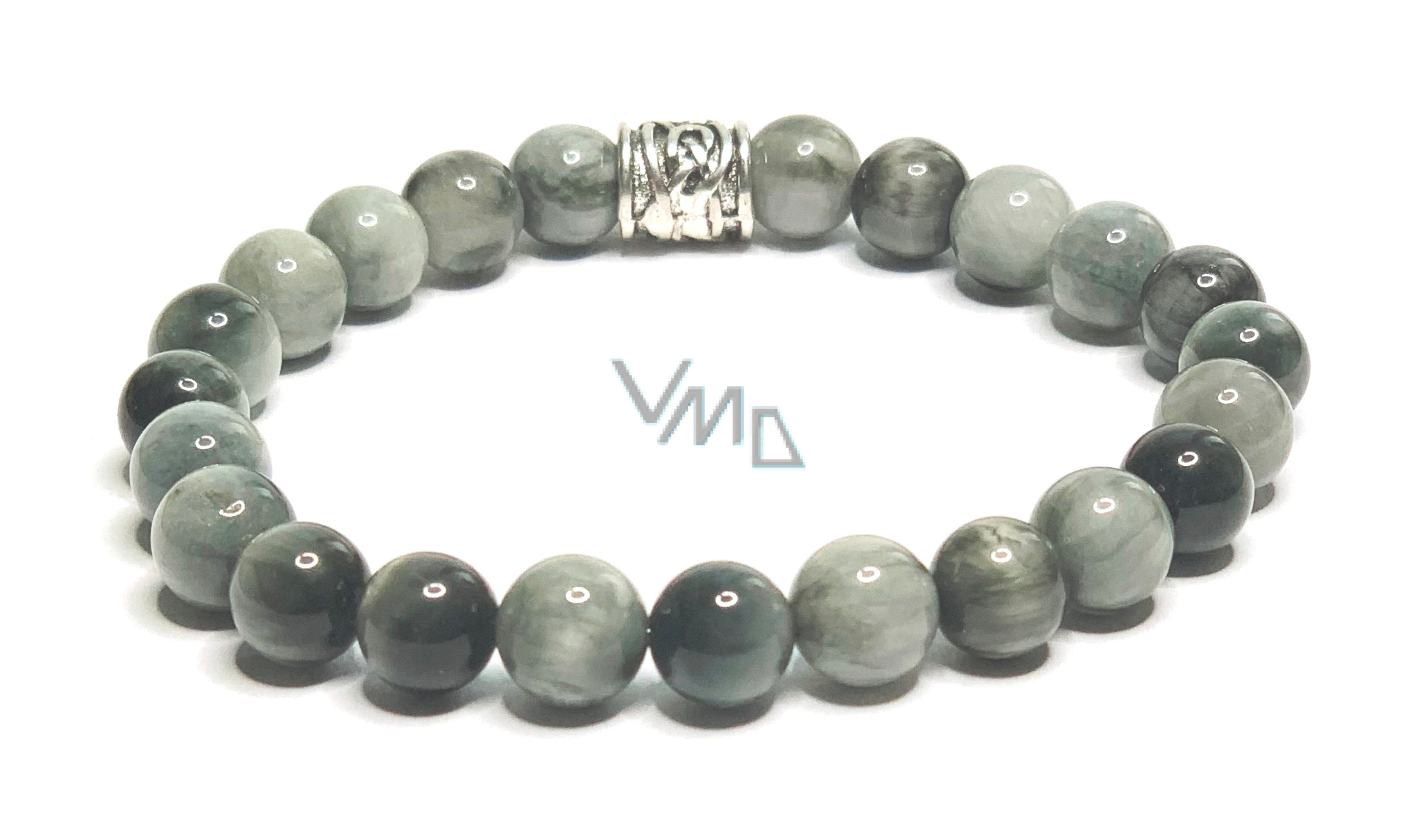 Sokolí oko / Hawk Eye náramek elastický přírodní kámen, kulička 8 mm / 16 - 17 cm, kámen moudrých předků
