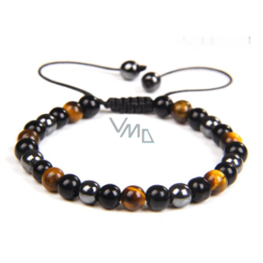 Hematit / Tygří oko / Obsidian náramek na hubnutí přírodní kámen, ručně pletený, nastavitelná velikost, kulička 6 mm