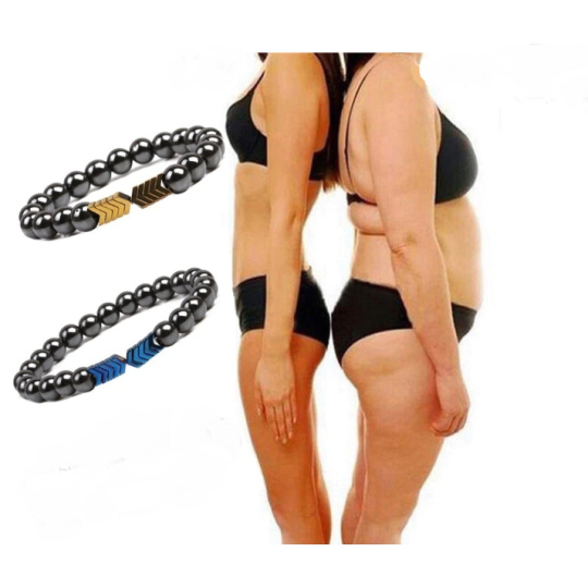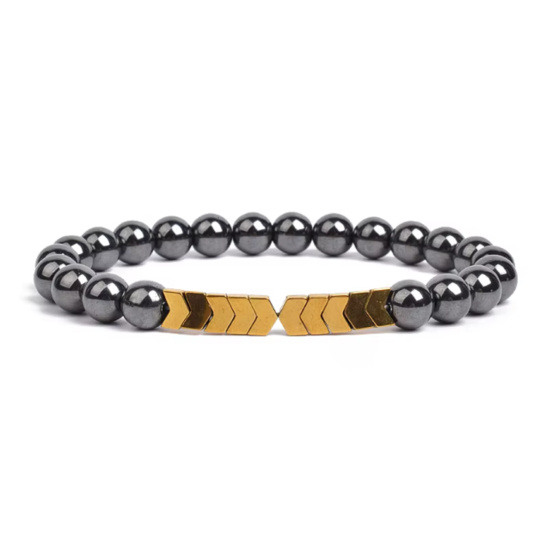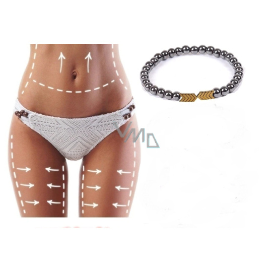 Magnetovec zeštíhlující náramek zlatá barva elastický přírodní kámen, kulička 8 mm / 21 cm