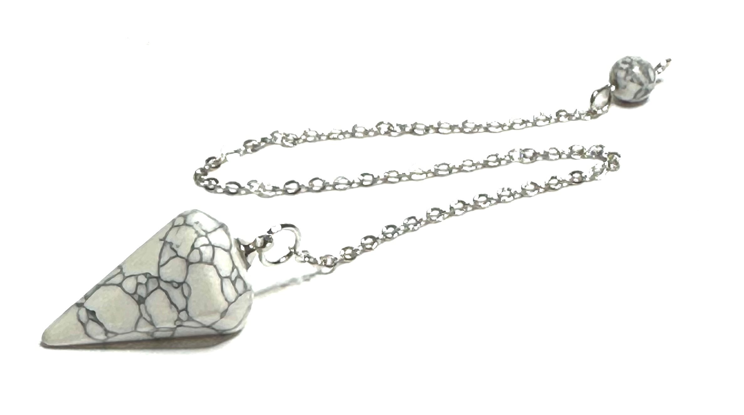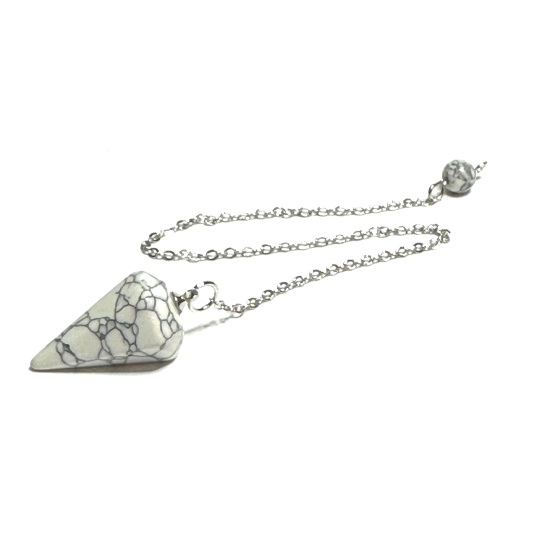 Magnezit / Howlit bílý kyvadlo přírodní kámen 2,5 cm + 18 cm řetízek s korálkou, očistný kámen