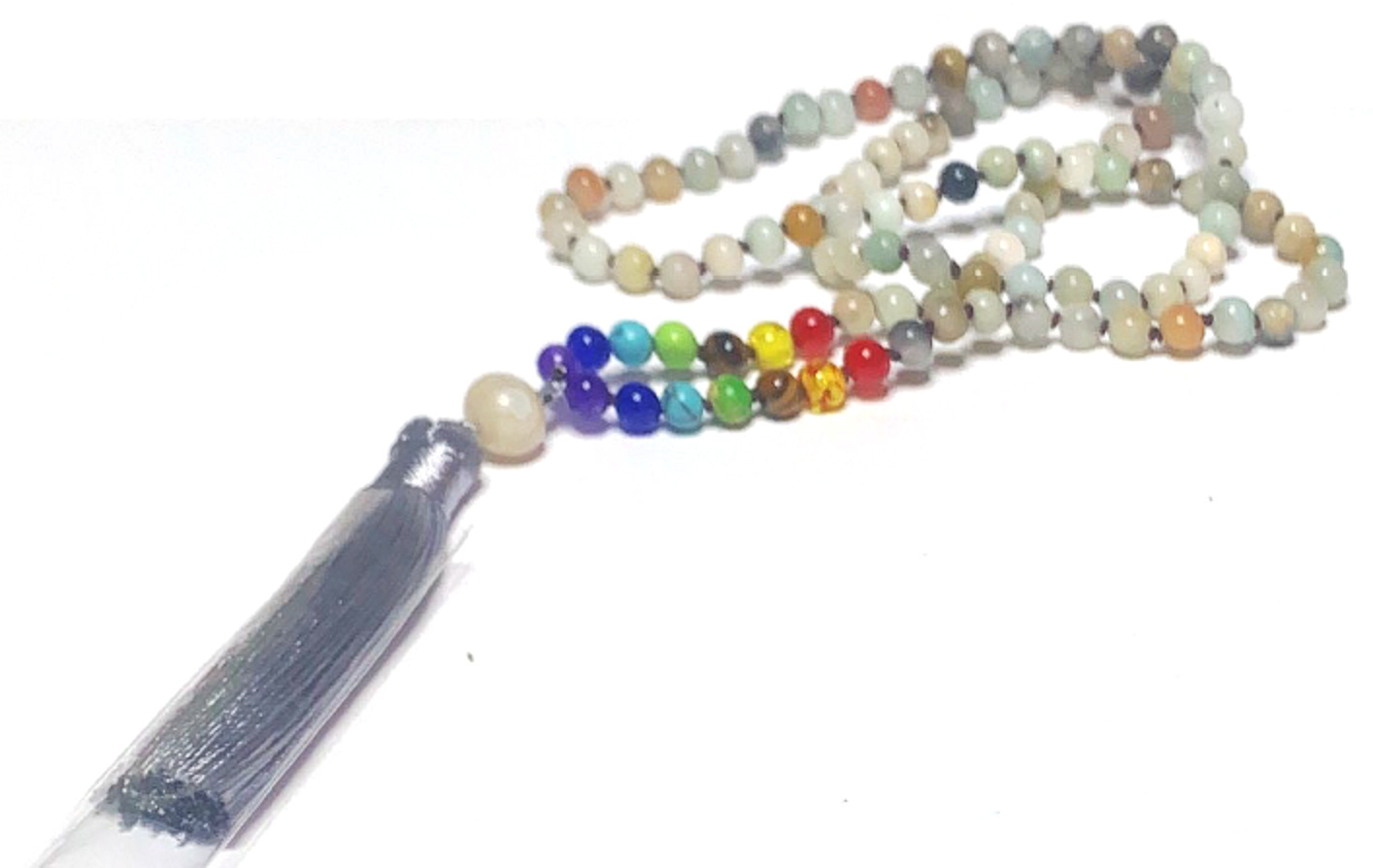 - Náhrdelník je vytvořen z přírodního Amazonitu a 7 dalších minerálů reprezentujících 7 čaker