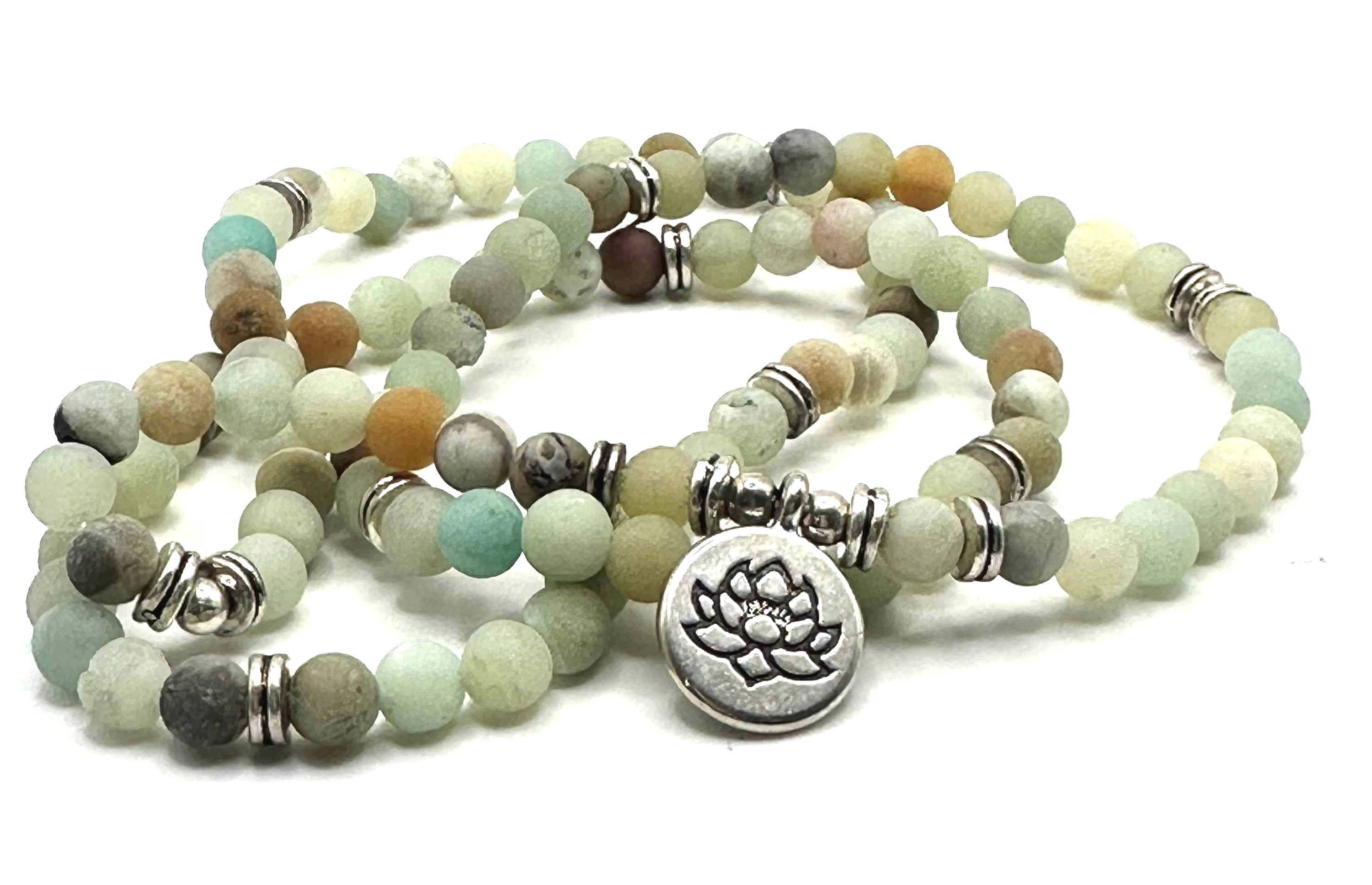 108 Mala Amazonit + Lotos náhrdelník meditační šperk, přírodní kámen, kulička 6 mm