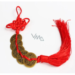 • červenou šňůrkou svázané tradiční mince, zakončené nekonečným uzlem, symbolizujícím dlouhověkost