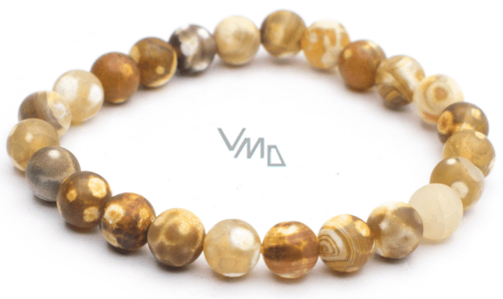 Achát ohnivý matný natur žlut náramek elastický přírodní kámen, kulička 8 mm / 16 - 17 cm, klid - ochrana - síla - harmonie