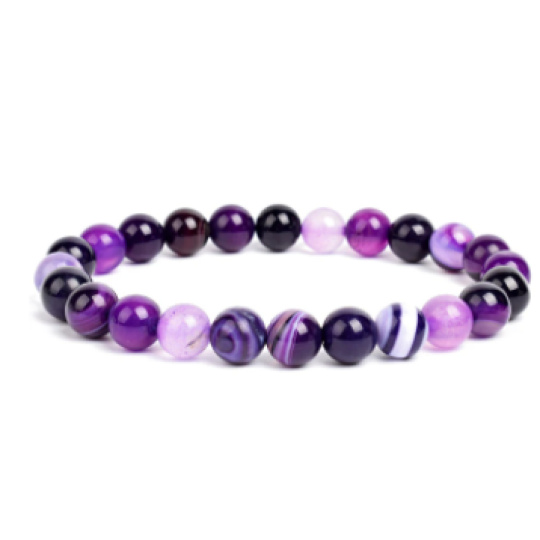 Ametiszt achát karkötő rugalmas természetes kő, gyöngy 6 mm / 16 - 17 cm