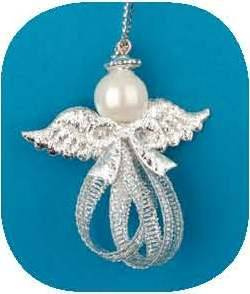 Závěs andílek s perlou stříbrný 6 ks, 5 cm