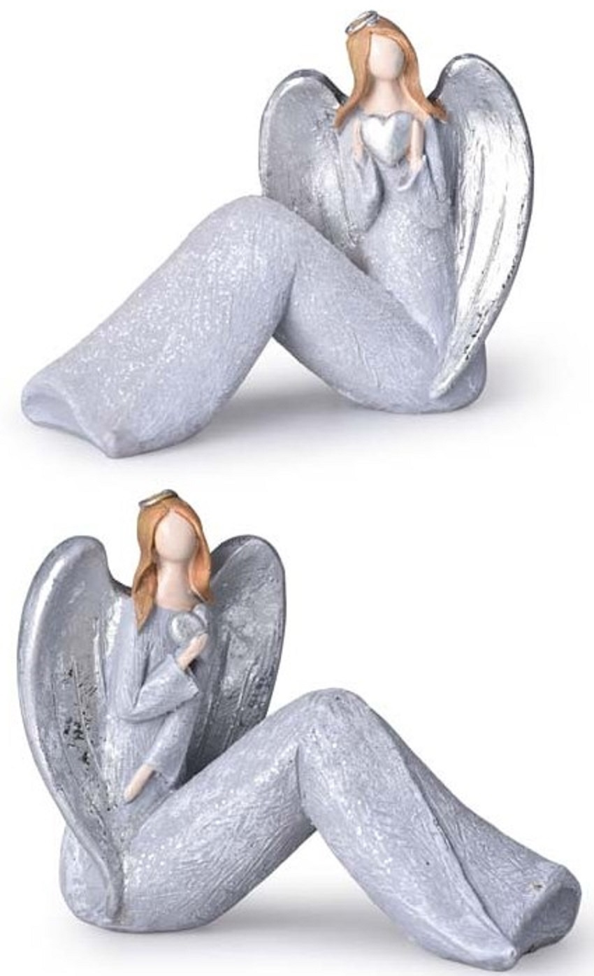 Anděl v šedých šatech se srdíčkem polyresin 108 x 62 mm mix druhů