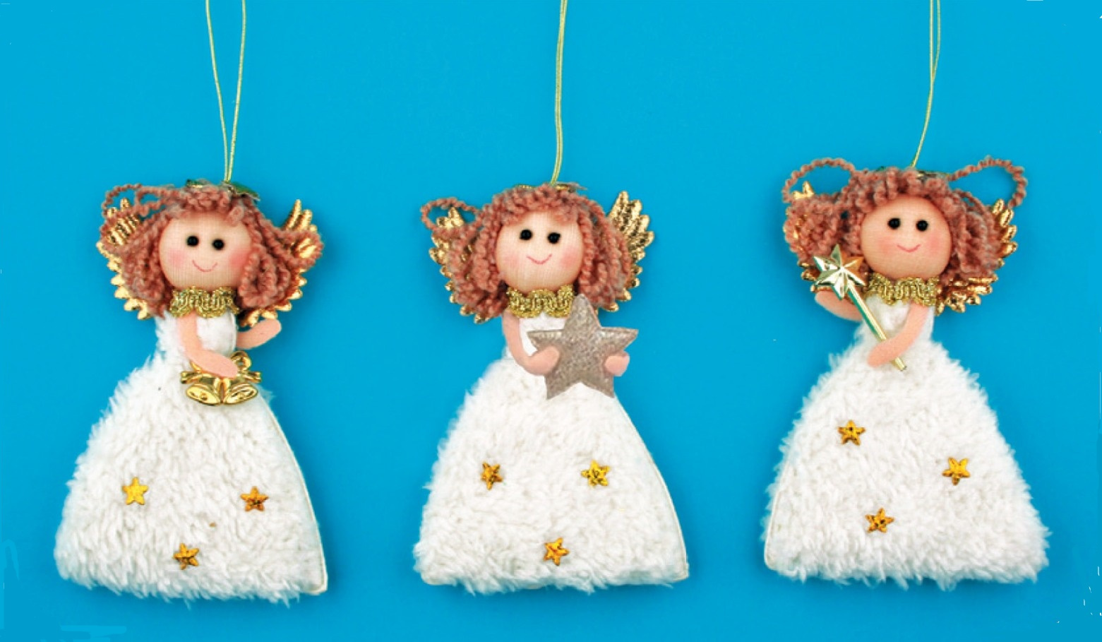 Anděl zlatý s plyšovými šaty na zavěšení 12 cm 1 kus