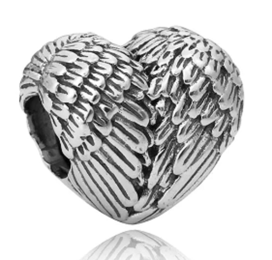 Andělská křídla - srdce je nepřehlédnutelný korálek v podobě křídel tvořících srdce. Potěší všechny milovníky nebeských bytostí. Vyroben je z antialergického kovu. Vhodné k navlékání na náramek typu Pandora nebo na řetízek. Mějte na paměti, že přívěsky nejsou úplně identické v důsledku ruční práce.
