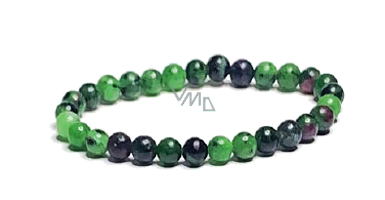 Anyolit / Rubin zoizit karkötő, rugalmas, természetes kő, 6 mm-es golyó / 16 - 17 cm, enyhíti a szomorúság időszakát