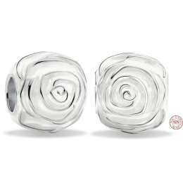 Charm Sterlingové stříbro 925 Bílá růže v květu, korálek na náramek květina