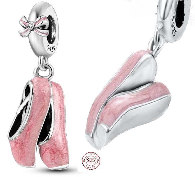Charm Sterlingové stříbro 925 Chic style - Růžové balerínky - balet, přívěsek na náramek zájmy