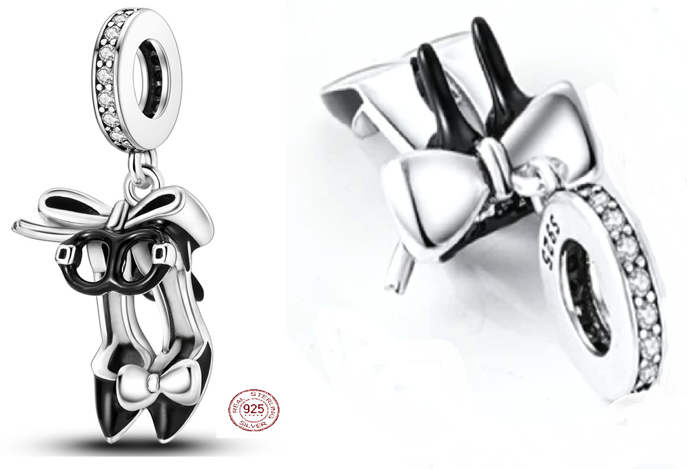 Charm Sterlingové stříbro 925 Chic style - střevíčky s mašlí, přívěsek na náramek, zájmy