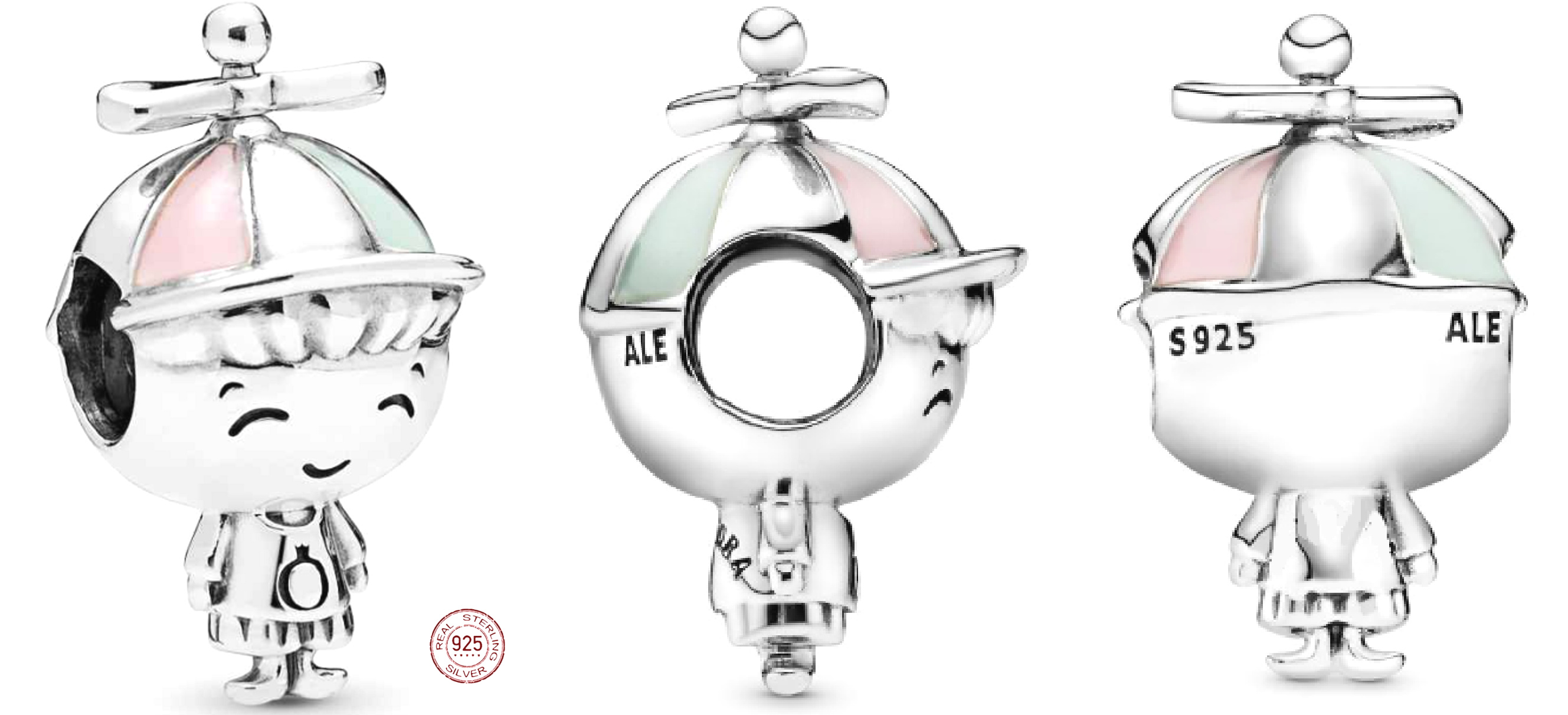 Charm Sterlingové stříbro 925 Chlapeček s vrtulkou na čepici, korálek na náramek, rodina