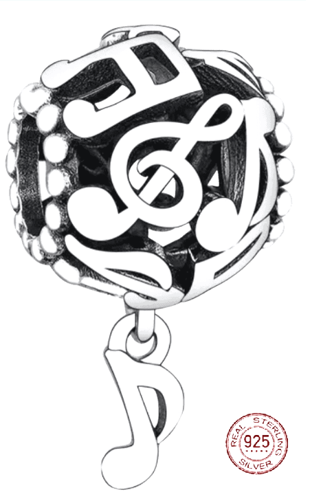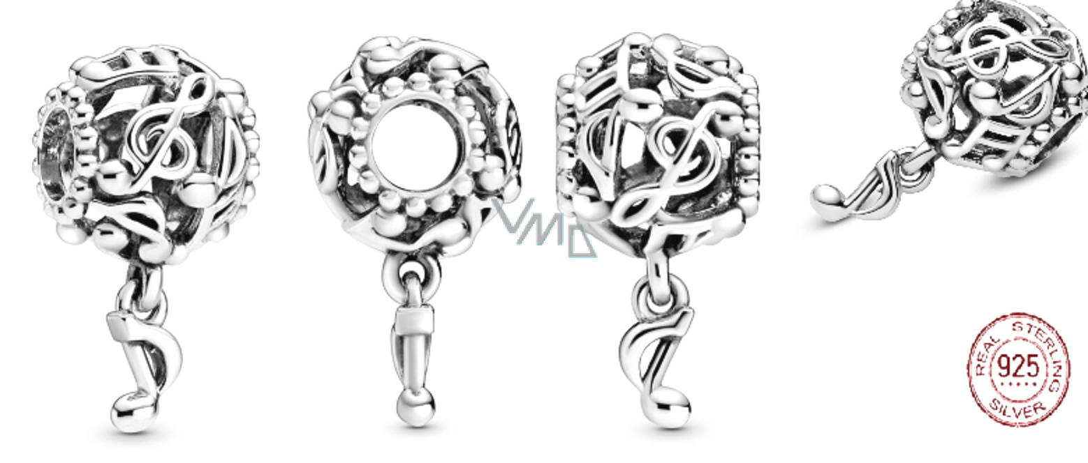 Charm Sterlingové stříbro 925 Děrované hudební noty, korálek na náramek symbol
