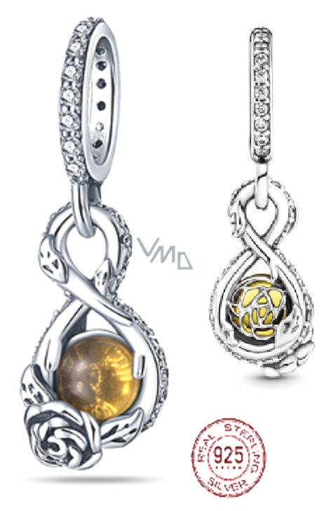 Charm Sterlingové stříbro 925 Disney Kráska a zvíře - Nekonečno a růže Belly, přívěsek na náramek, film