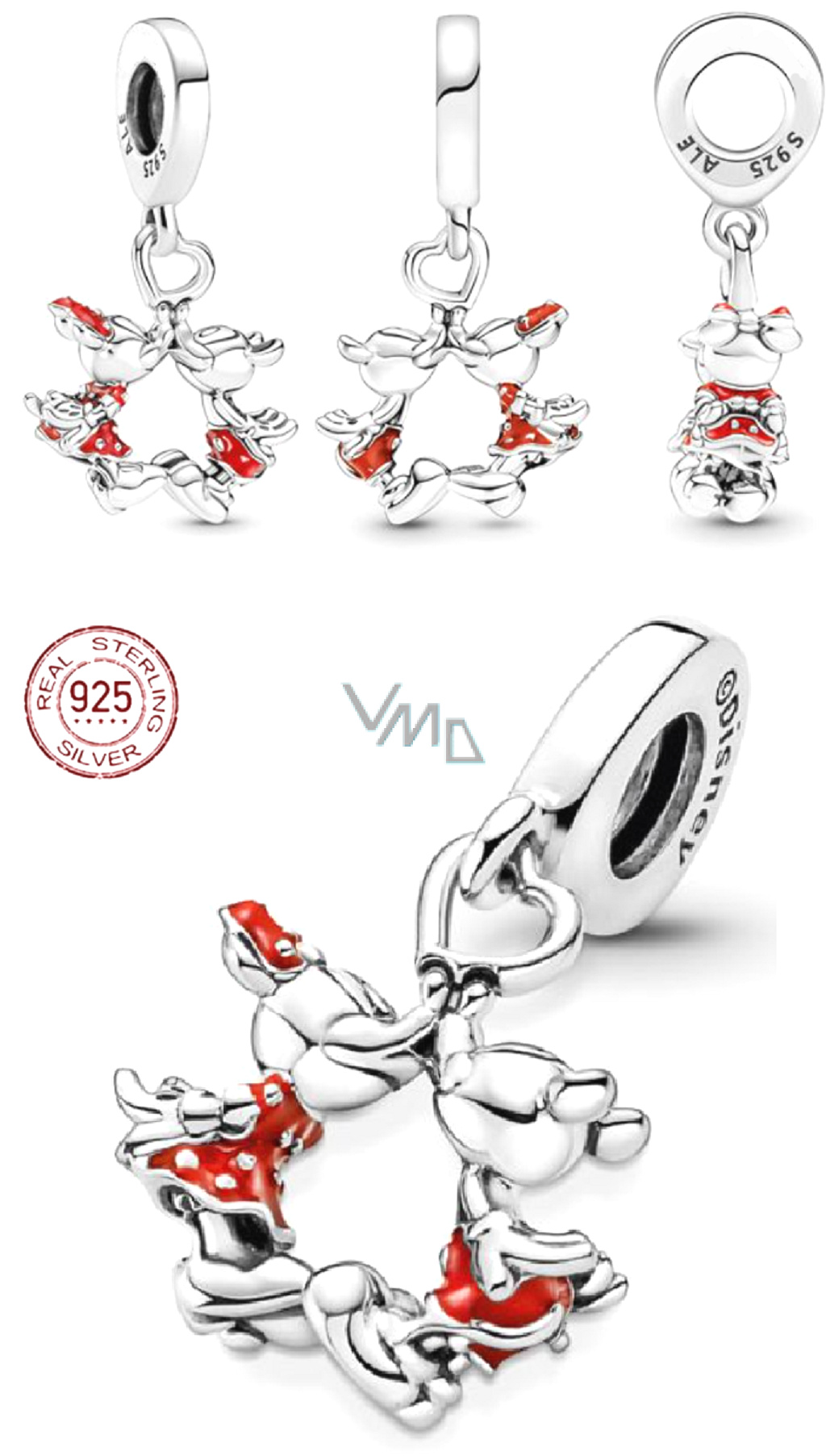 Charm Sterlingové stříbro 925 Disney Minnie Mouse & Mickey Mouse líbající se, přívěsek na náramek, film