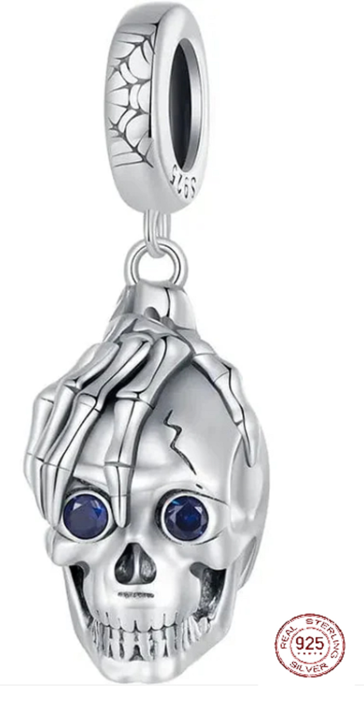 Charm Sterlingové stříbro 925 Kostlivec držící lebku, přívěsek na náramek Halloween
