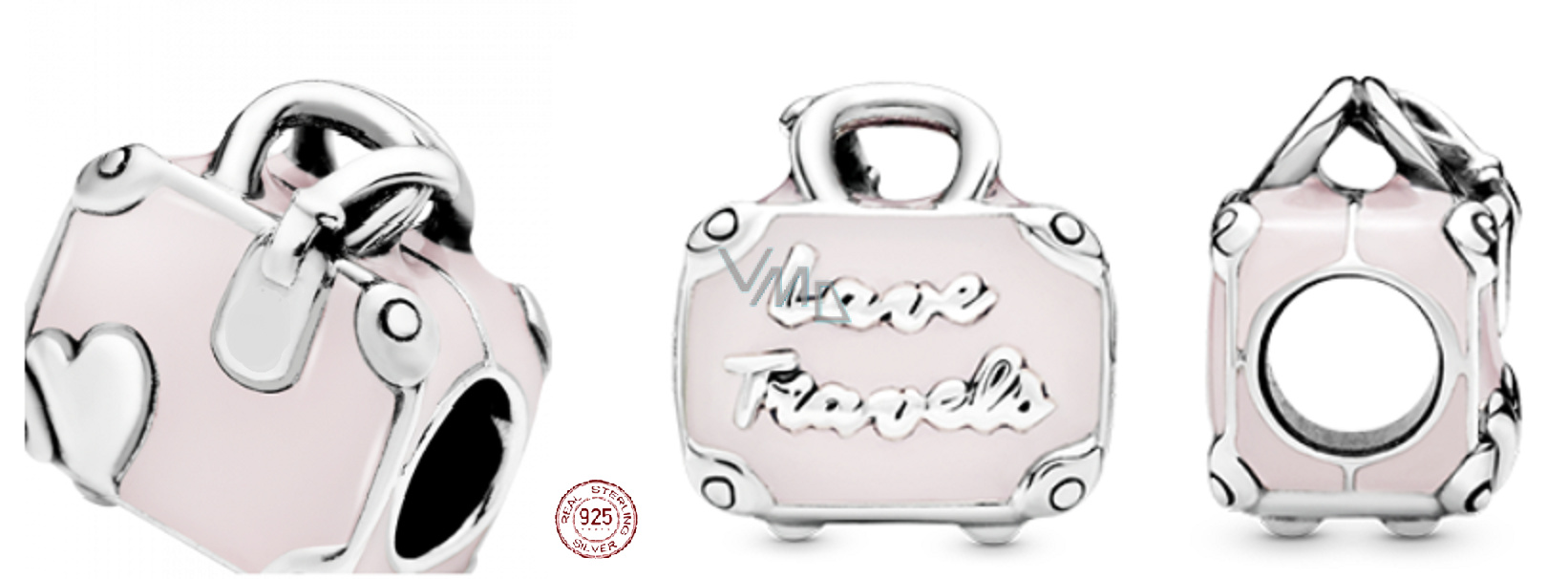 Vyprávějte svůj příběh nošením svého oblíbeného náramku s tímto přívěskem na kufr. Zdobený barevnými srdíčky s růžovým smaltem. Na přívěsku 925 Sterling Silver je vyryto nápis „Love travels“, Láska cestuje. Přívěsek, který vás zve, abyste si ho vzali s sebou na náramek nebo náhrdelník na své další dobrodružství. Růžová barva šperku určitě zaujme,