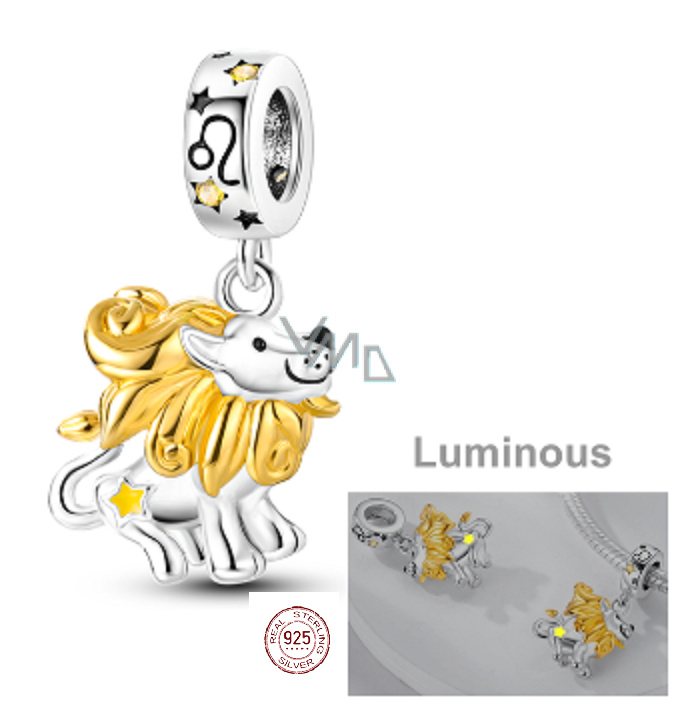 Charm Sterlingové stříbro 925 Znamení zvěrokruhu Lev, zářící ve tmě luminozní přívěsek na náramek