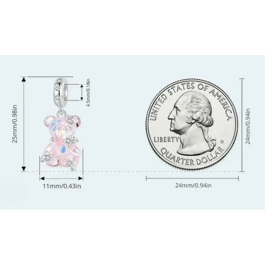 Lesklý povrch a roztomilý vzhled dodávají vašemu náramku osobitý šarm. Tento rozkošný přívěsek vyrobený z mincovního stříbra S 925 a zářivé syntetické Pryskyřice obsahuje barevného gumového medvídka zdobeného třpytivými stříbrnými hvězdami pokrytými kameny kubické zirkonie dodává nádech magie a elegance. Nápaditý kousek má okouzlující design a potěší hlavně ženy.