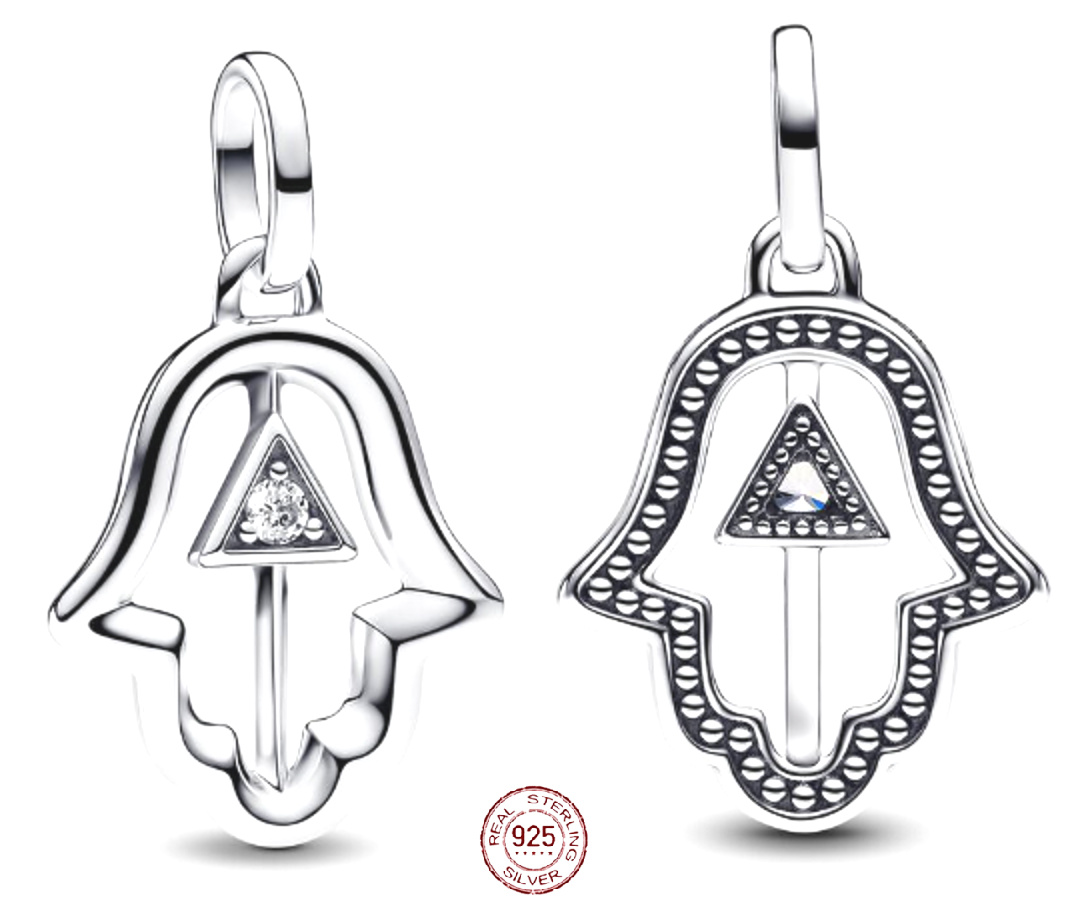 Charm Sterlingové stříbro 925 Mini medailon Ruka Fatimy, přívěsek na náramek symbol