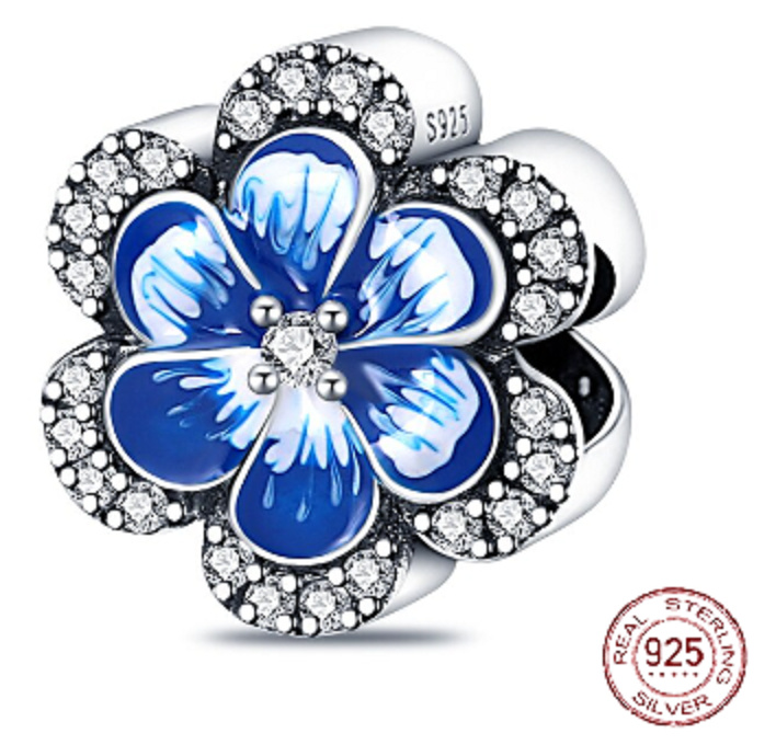 Charm Sterlingové stříbro 925 Modrá maceška + zirkony, korálek na náramek květina