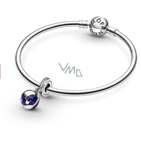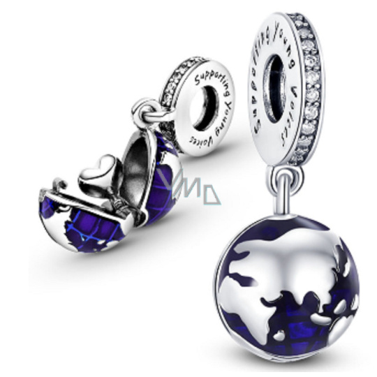 Charm Sterlingové stříbro 925 Planeta země - Modrá planeta, 2v1 otevírací, uvnitř srdce, přívěsek na náramek vesmír