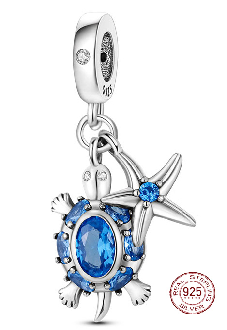Charm Sterlingové stříbro 925 Mořská želva, hvězdice 2v1, přívěsek na náramek moře