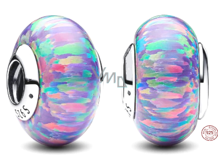 Charm Sterlingové stříbro 925 Opaleskující fialový přívěsek, korálek na náramek symbol