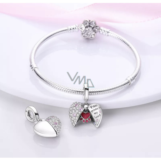 Charm Sterlingové stříbro 925 Otisky tlapky na mém srdci, přívěsek srdce na náramek mazlíček