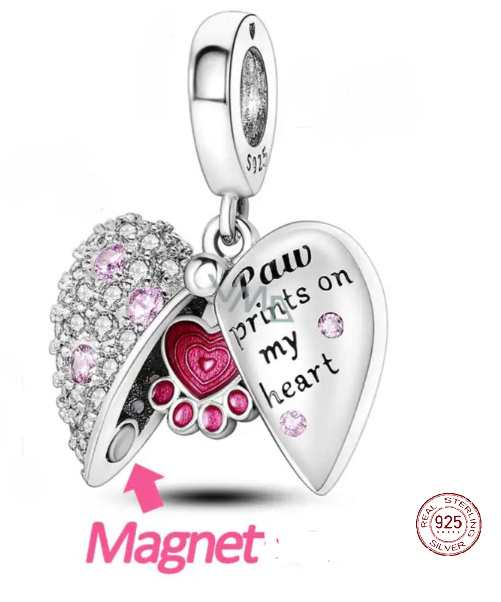 Přívěsek ve tvaru srdíčka s magnetem je jako dělaný pro všechny milovníky čtyřnohých mazlíčků. Ukrytá tlapička vašeho mazlíčka v srdci znázorňuje, jak moc vašeho mazlíčka milujete a máte ho ve svém srdci. Roztomilý přívěsek rozveselí váš náramek.
