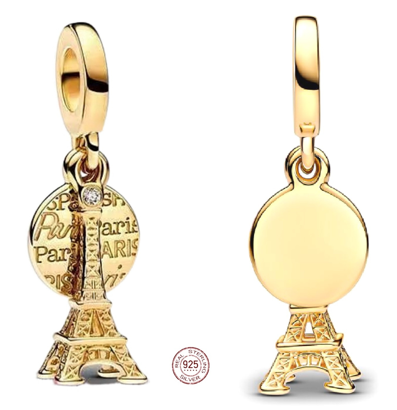Charm Sterlingové stříbro 925 Paříž Eiffel věž 2v1, přívěsek na náramek cestování