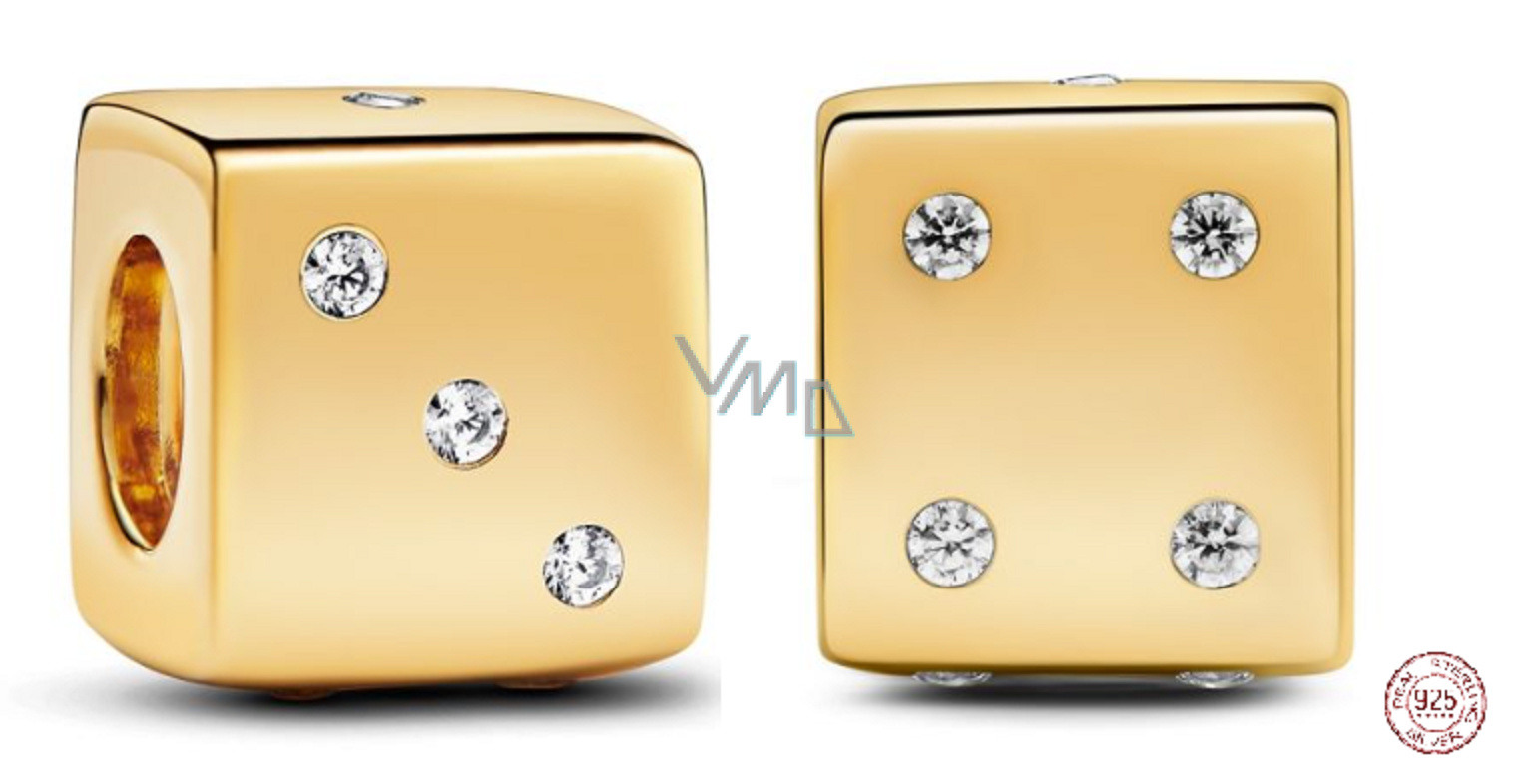 Charm Sterlingové stříbro 925 Pozlacená kostka + umělý zirkon, korálek na náramek symbol