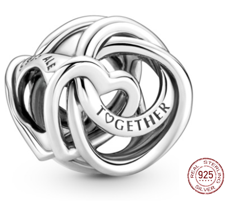 Charm Sterlingové stříbro 925 Srdce v kroužcích - spolu, korálek na náramek láska