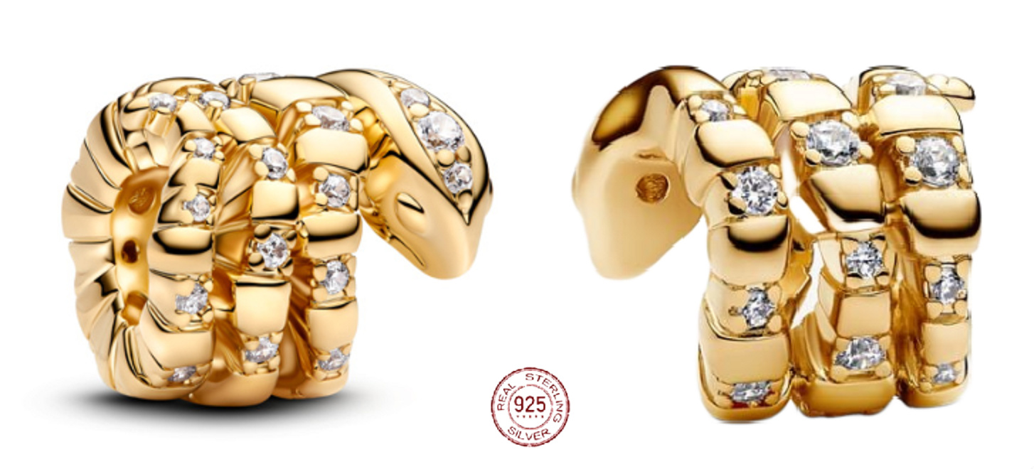 Charm Sterlingové stříbro 925 Svinovací hadí lesk kouzlo, korálek na náramek znamení, zvíře