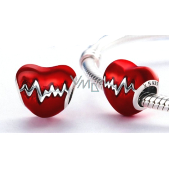 Charm Sterlingové stříbro 925 Tlukot srdce červená glazura, korálek na náramek láska