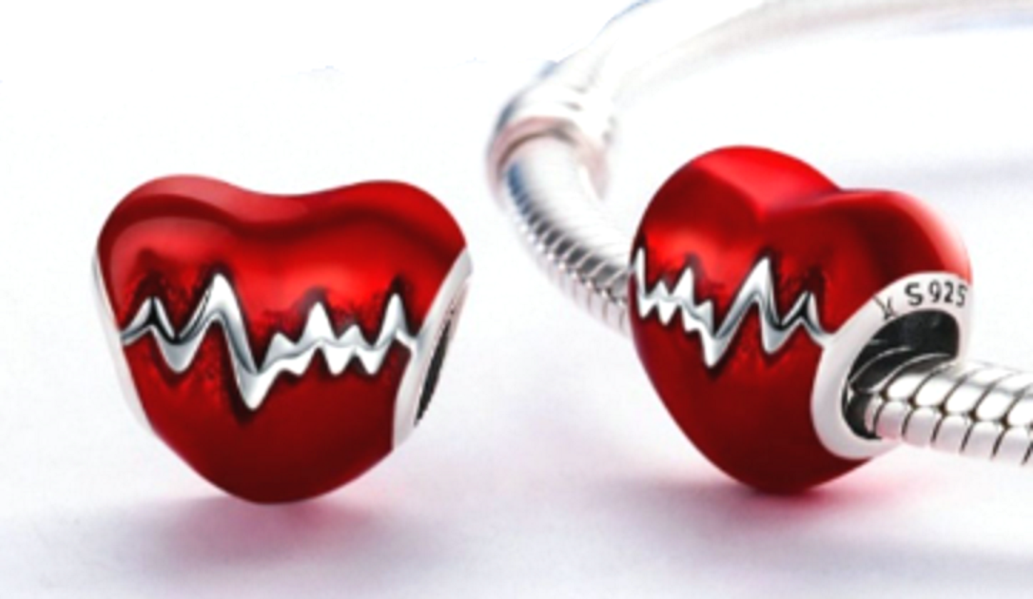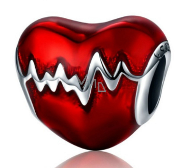 Charm Sterlingové stříbro 925 Tlukot srdce červená glazura, korálek na náramek láska