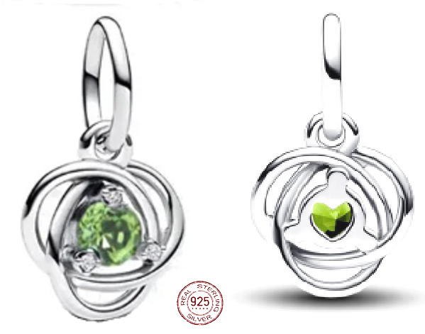 Charm Sterlingové stříbro 925 Zelený světlý kruh věčnosti srpen, přívěsek na náramek symbol