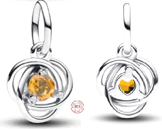 Charm Sterlingové stříbro 925 Žlutý kruh věčnosti listopad, přívěsek na náramek symbol