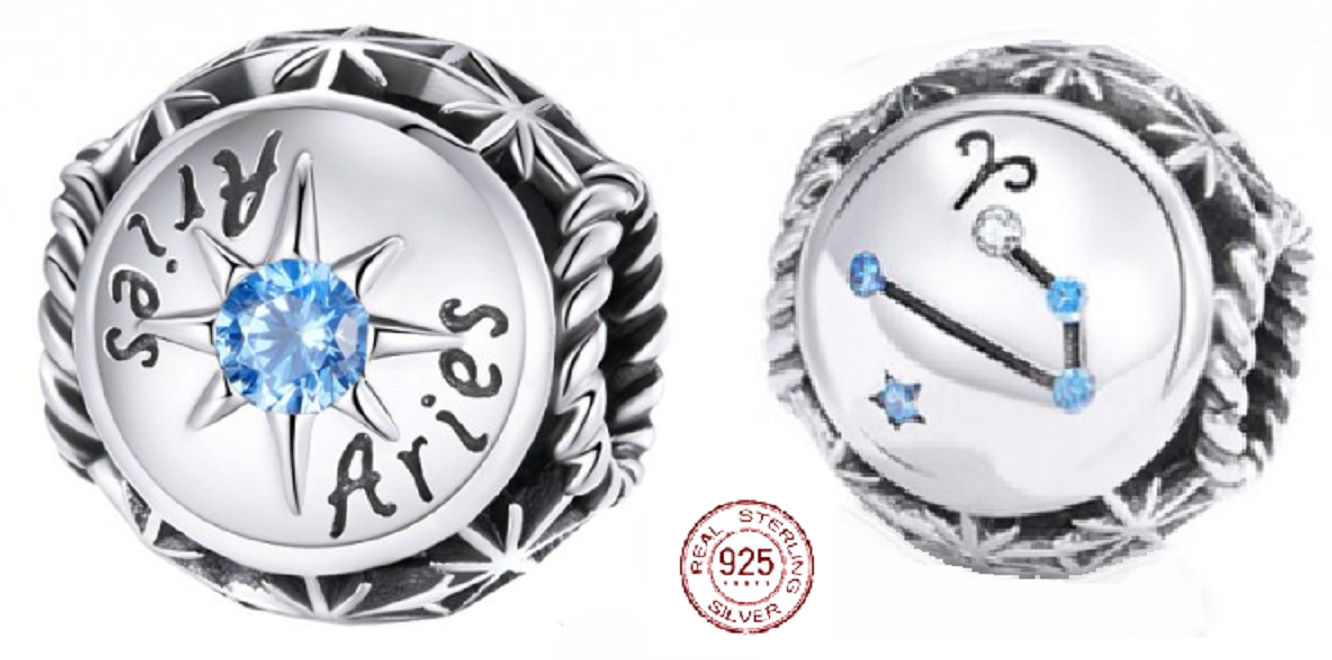 Charm Sterlingové stříbro 925 Znamení zvěrokruhu, kubické zirkonie Beran, korálek na náramek