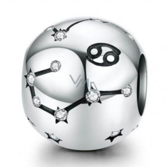 Charm Sterlingové stříbro 925 znamení zvěrokruhu Rak + zirkony, korálek na náramek 9 mm