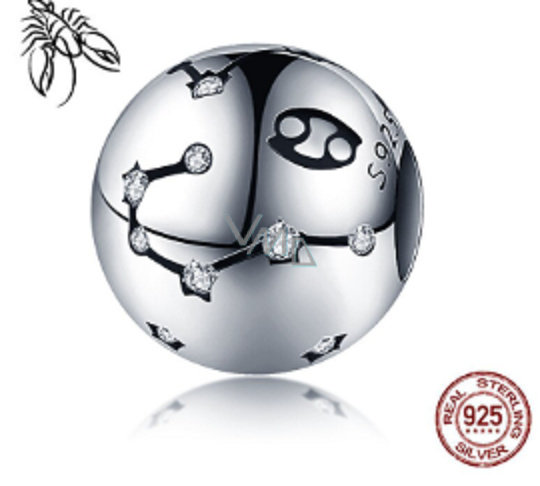 Charm Sterlingové stříbro 925 znamení zvěrokruhu Rak + zirkony, korálek na náramek 9 mm