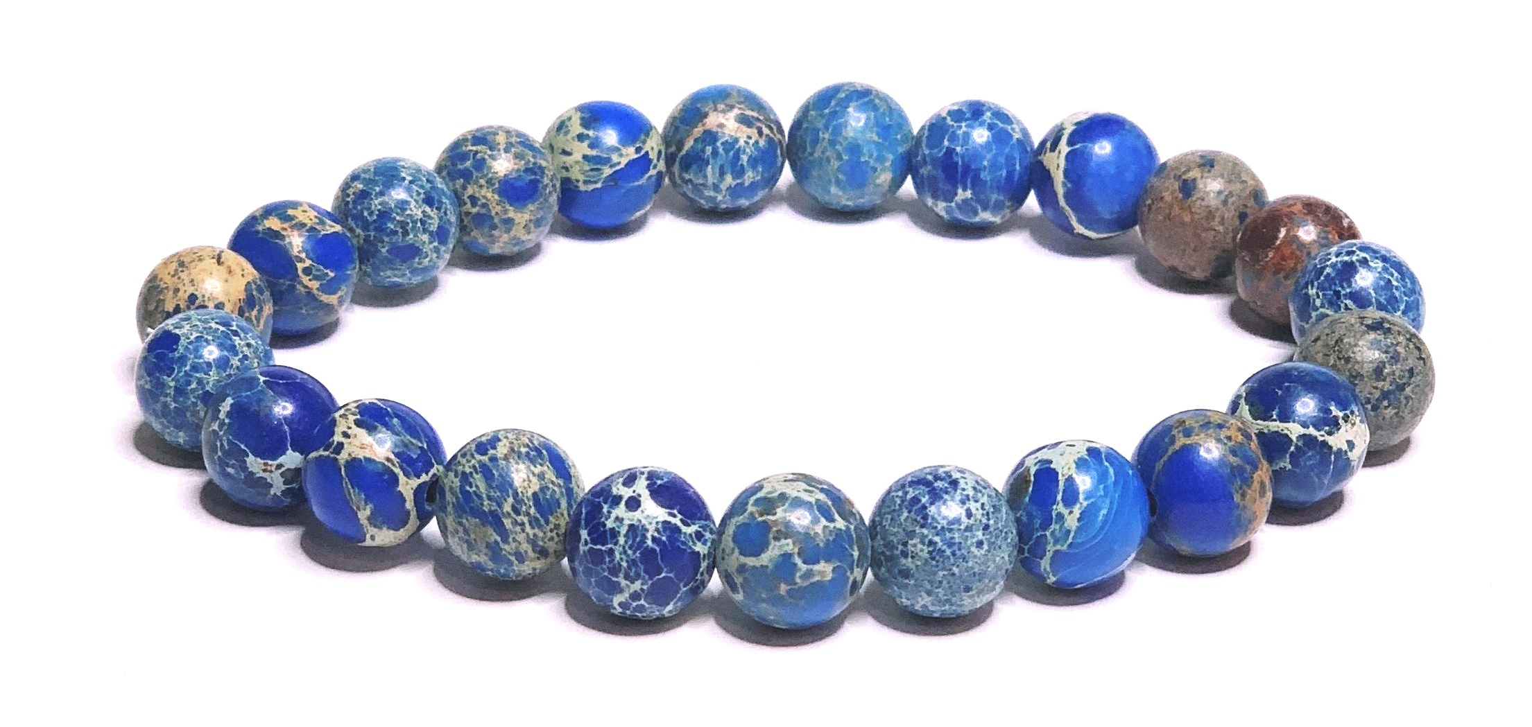 Jáspis / Császári tengeri üledék regalit kék karkötő rugalmas vegyes ásvány, 8 mm-es golyó / 16 - 17 cm