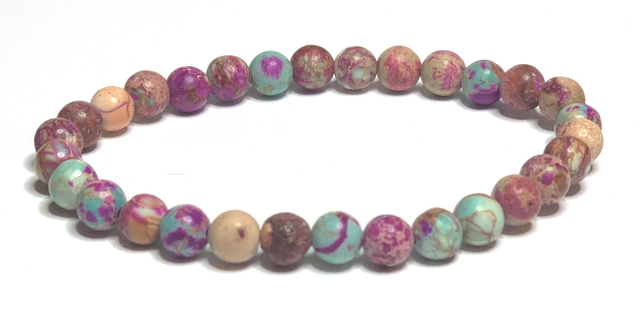 Jáspis / Regalit Császári tengeri üledék türkiz-lila karkötő rugalmas vegyes ásvány, gyöngy 6 mm / 16 - 17 cm